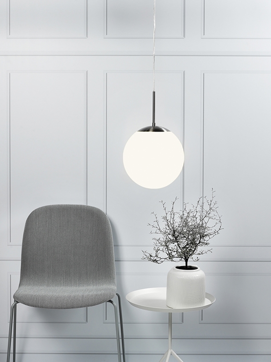 Den smukke Cafe pendel findes i forskellige størrelser henholdsvis Ø15, Ø20, Ø25 og Ø30. Pendlerne er enkle og giver derfor et minimalistisk udtryk i rummet. Cafe 30 pendlen giver et blødt og diffust lys grundet den opale skærm. Skærmen er fremstillet af mundblæst glas.