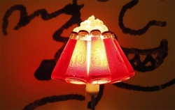 Ingo Maurer Campari Bar bordlampen er bestående af ti originale Campari Soda flasker, individuelt aftagelige. Fremstillet i plastik, metal, glas og porcelæn. Over de ti originale Campari Soda flasker er placeret isterninger lavet af glas, som reflekterer lyset. Indeholder trækontakt.