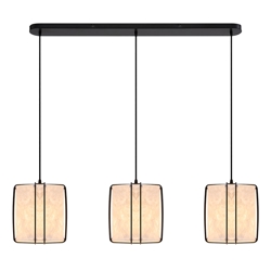 Cardine kommer som et sæt med 3 pendler, der tilsammen har en bredde på 112 cm. Cardine-serien har et moderne japansk udtryk, der kombineres med nordisk minimalisme. Den let krøllede papirskærm er ophængt af tynde metalwirer og sikrer et behageligt, diffust lys.