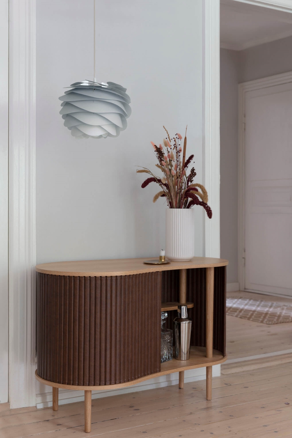 Carmina lampeskærmens linjer er inspireret af de bløde bølger ved de danske kyststrækninger. Skærmen kan i kombination med ophæng eller standere fra eksempelvis Umage danne en flot pendel, væglampe eller gulv- eller bordlampe. Benyt Carmina til at få belysning over spisebordet med et roligt visuelt udtryk, der også vil gøre sig godt i hjemmets øvrige rum. Den smukke lampeskærm findes i en række forskellige farver og i en større variant i hvid.
