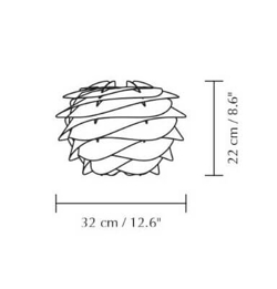 Carmina skal kombineres med et ophæng eller en stander, som købes særskilt. Vælg eksempelvis mellem E27-ophængene Cannonball, Cannonball Cluster 2 og 3, Cord Set, Cord Set Pro eller Rosette fra Umage. Vægophængene Willow, gulv- eller bordstanderne Tripod eller Santé vægbase smat Santé gulv- eller bordstanderne fra Umage passer også godt til Carmina mini.