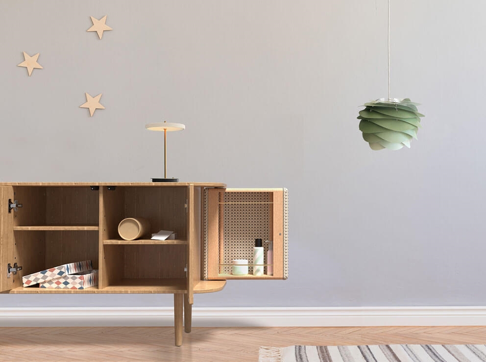 Carmina skal kombineres med et ophæng eller en stander, som købes særskilt. Vælg eksempelvis mellem E27-ophængene Cannonball, Cannonball Cluster 2 og 3, Cord Set, Cord Set Pro eller Rosette fra Umage. Vægophængene Willow, gulv- eller bordstanderne Tripod eller Santé vægbase smat Santé gulv- eller bordstanderne fra Umage passer også godt til Carmina mini.
