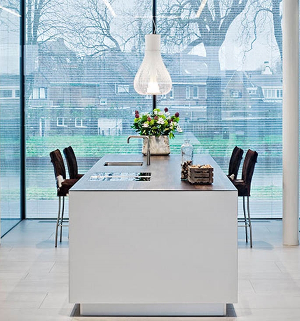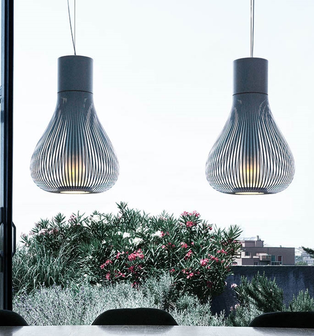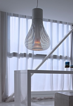 Pendlen har en fleksibel i form – og er elegant i sit udtryk. Findes i sort og hvid.