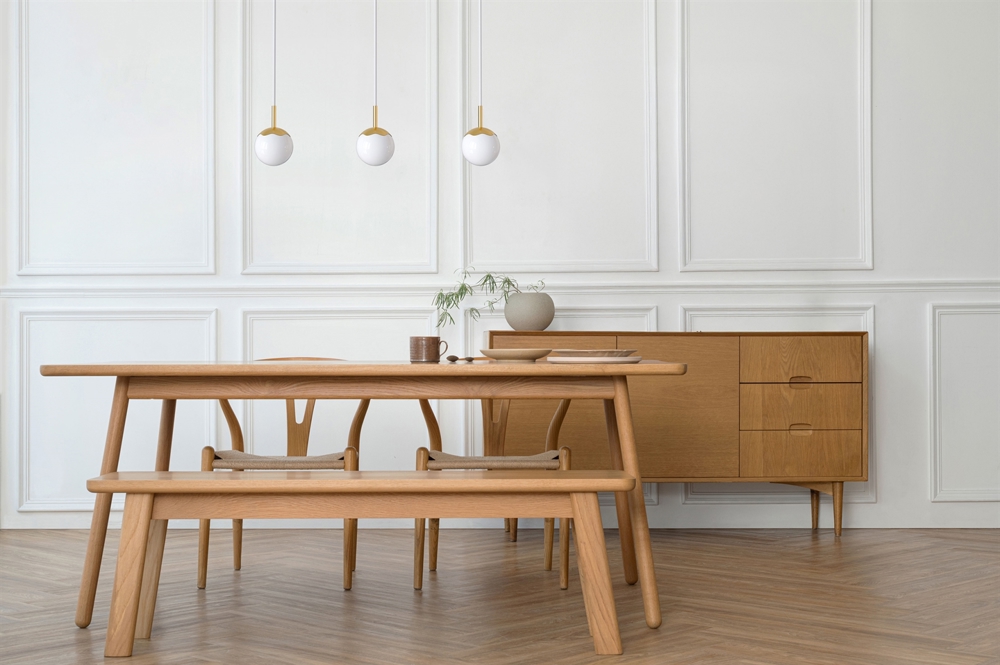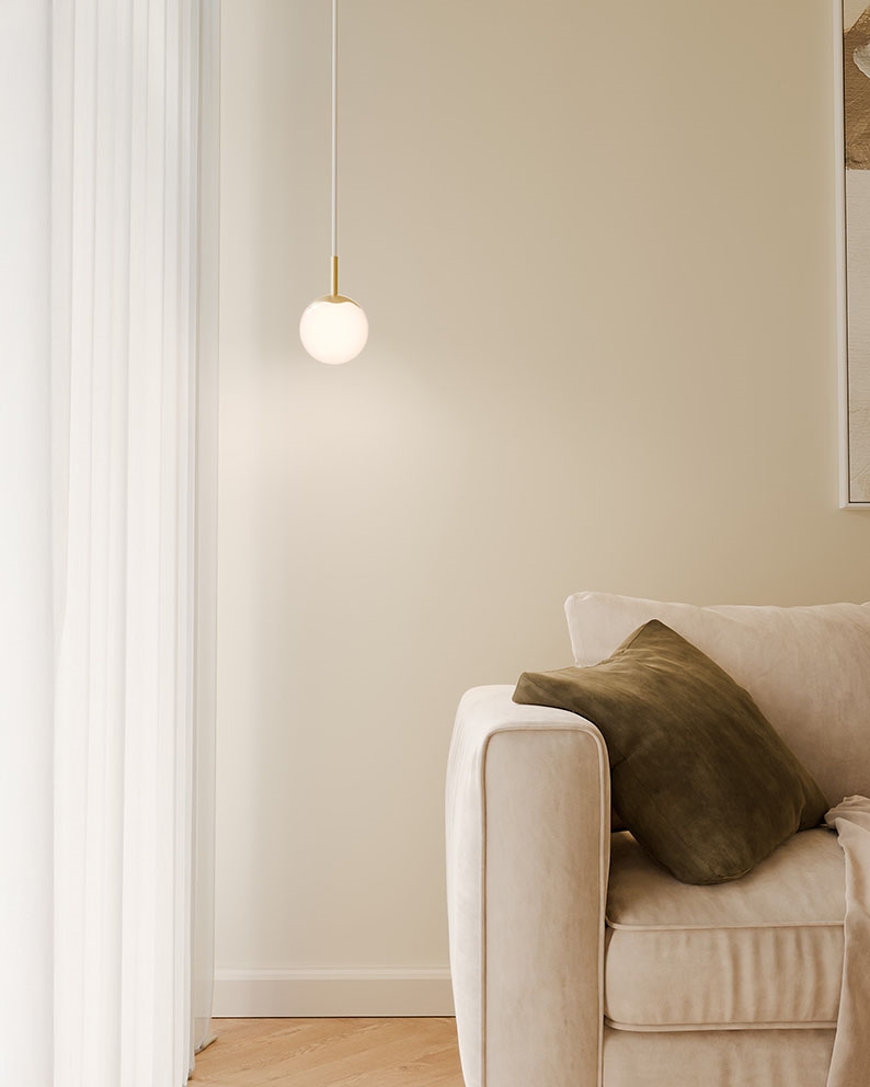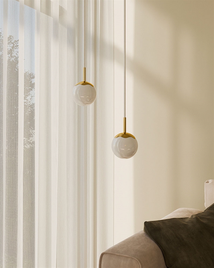 Pendlen Circle of Life har et kompakt og elegant skandinavisk design inspireret af livets op- og nedture. Lampens lette nordiske udtryk fremhæves på denne variant af den hvide stofledning, mens toppen i håndlavet polerede messing tilføjer varme og eksklusivitet til designet. Kugleskærmen i mundblæst opalglas sikrer et blødt og behageligt lys.