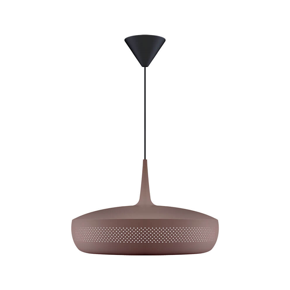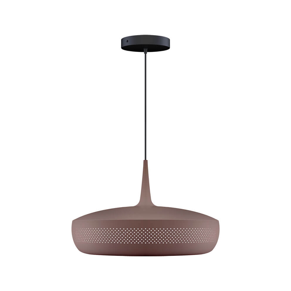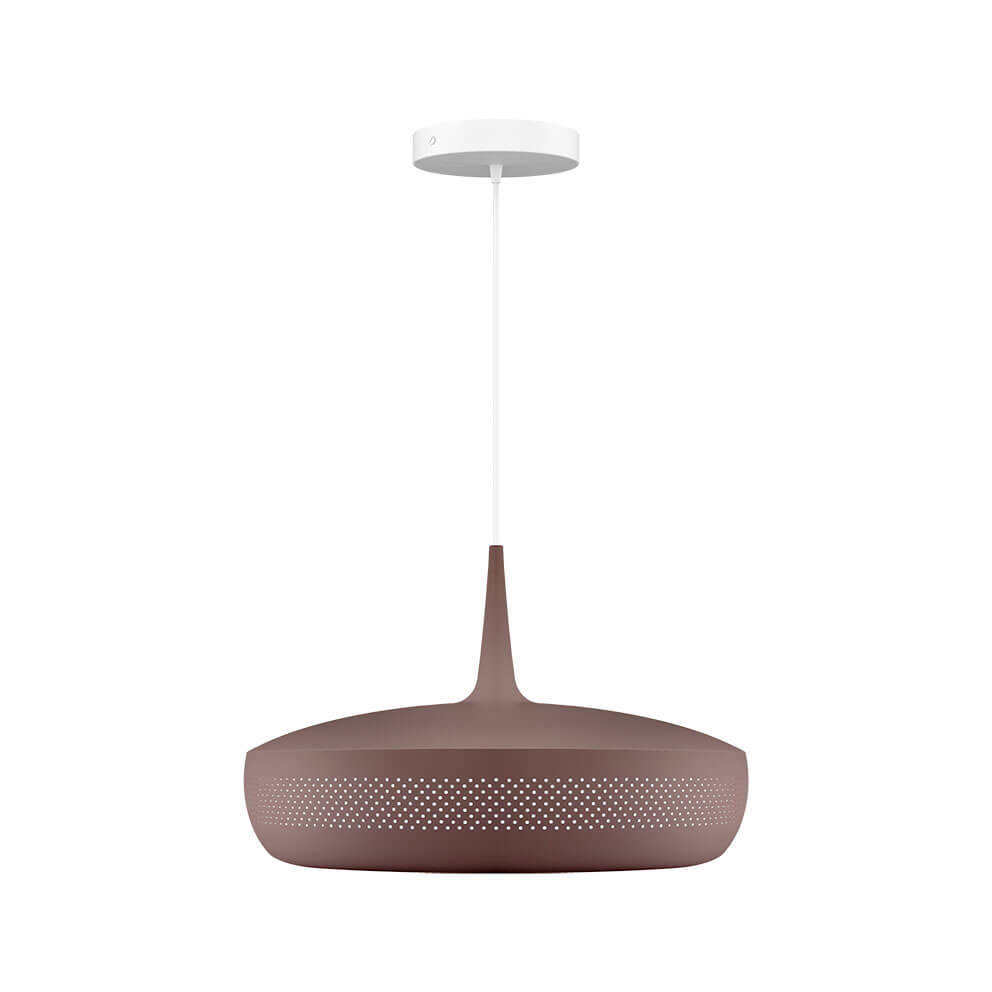 Clava Dine i umberbrun er en lampeskærm, der danner en elegant pendel med et eksklusivt udtryk, når den kombineres med et ophæng. Den har et retroinspireret design med en række små symmetriske huller placeret hele vejen rundt på skærmen, der er fremstillet i aluminium. Benyt eksempelvis lampeskærmen som belysning over spisebordet eller over sofabordet i stuen.