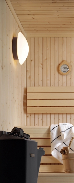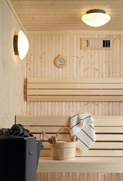 Solhem Sauna saunalampen findes i farverne hvid, grå og brun. Contrast-serien består udover Solhem Sauna også af Fridhem Sauna.