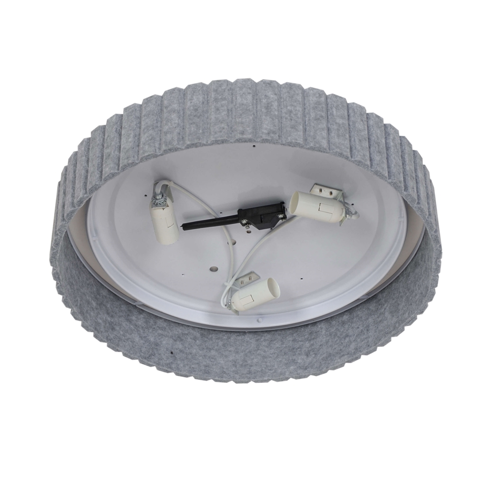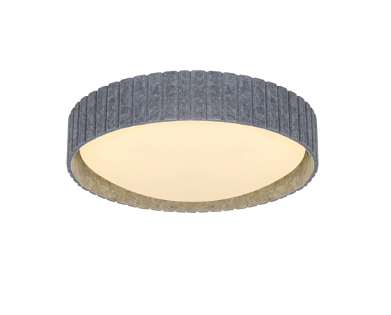 Loftlampen Corato findes i to størrelser med skærme i plast omkranset af grå filt, der giver lamperne et dekorativt og blødt udtryk. En elegant loftlampe i en klassik form og med et utraditionelt finish. Leverer et blødt og behageligt indirekte lys.