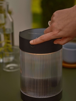 Lampen er et moderne bud på den traditionelle udendørs lanterne og oplades via sollys eller med det medfølgende USB-kabel for hurtig opladning. Den har integreret afbryder og er dæmpbar i tre trin med Moodmaker™, så lysstyrken kan tilpasses den ønskede stemning. På fuld styrke lyser lampen 4 timer, på mellemste styrke 6 timer og på laveste styrke 12 timer.
