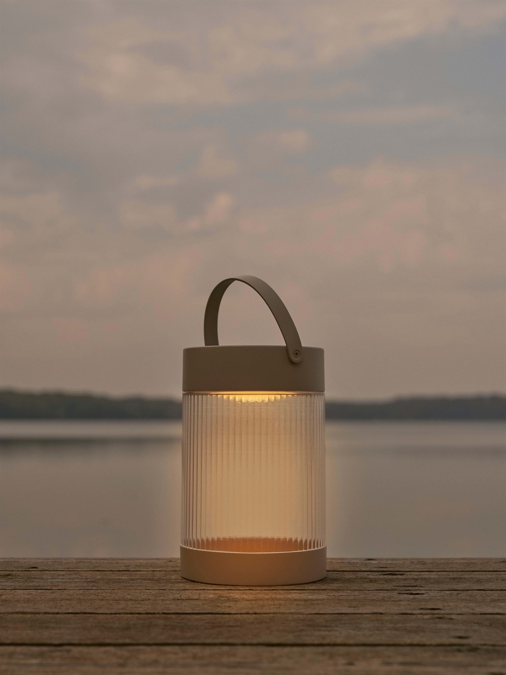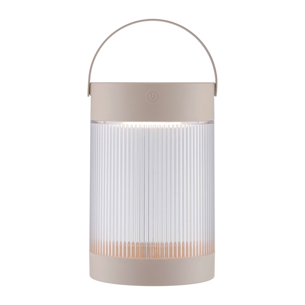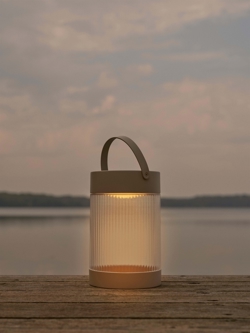 Den transportable bordlampe Coupar Solar er dansk design med en ribbet skærm, der sikrer et behageligt lys.