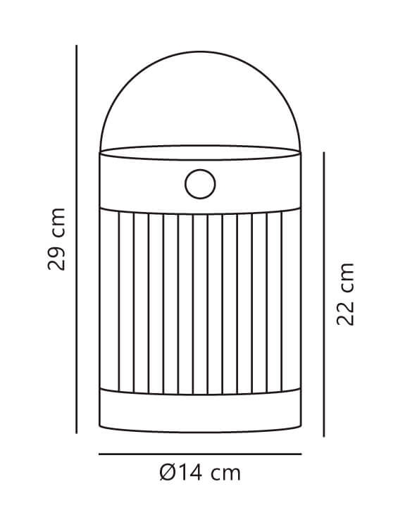 Lampen er et moderne bud på den traditionelle udendørs lanterne og oplades via sollys eller med det medfølgende USB-kabel for hurtig opladning. Den har integreret afbryder og er dæmpbar i tre trin med Moodmaker™, så lysstyrken kan tilpasses den ønskede stemning. På fuld styrke lyser lampen 4 timer, på mellemste styrke 6 timer og på laveste styrke 12 timer.