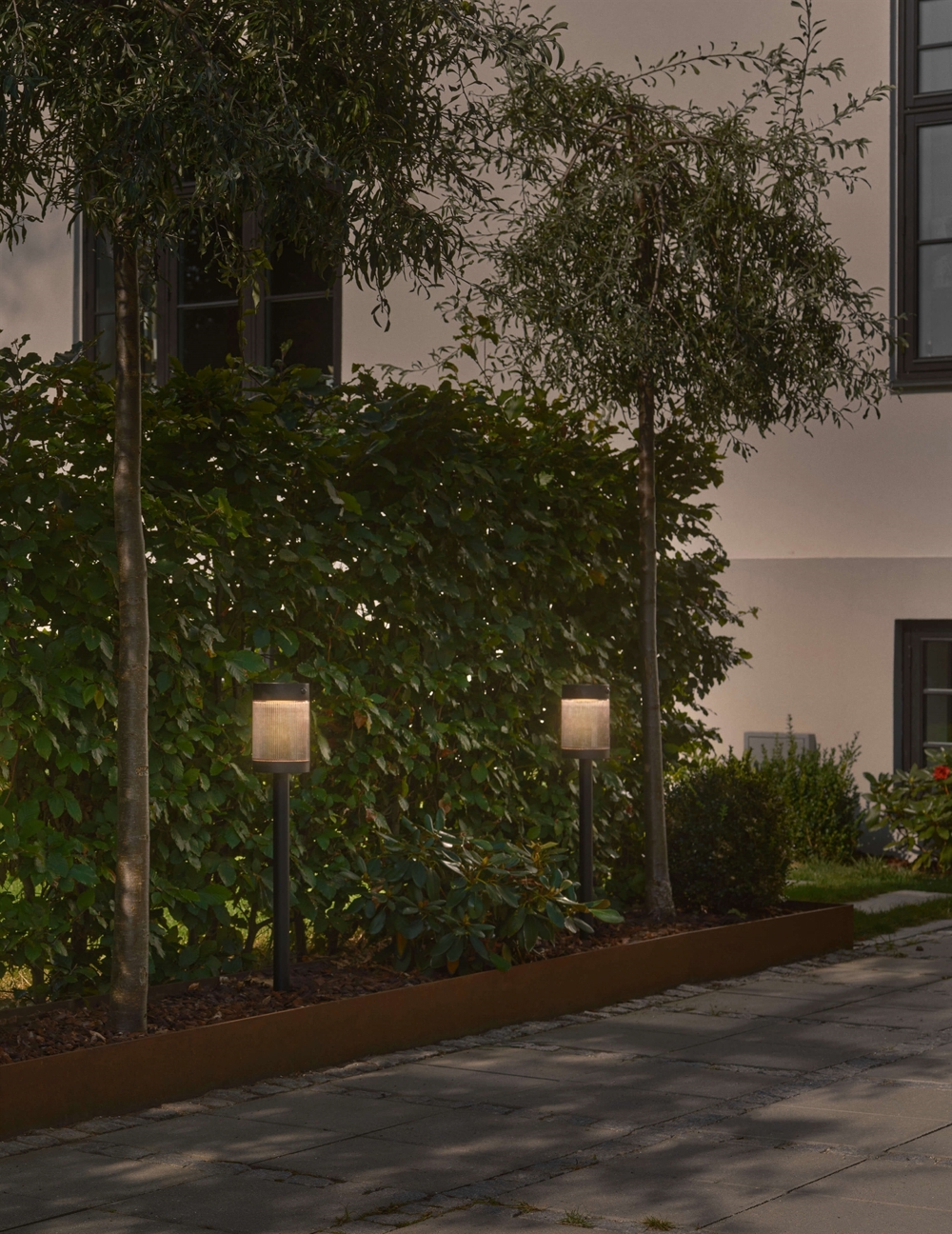 Havelampen Coupar Solar er dansk design og et moderne bud på den traditionelle lanterne. Lampen oplades via sollys om dagen og styres af en bevægelsessensor med to indstillinger og et sensorområde på 0-8 meter. Den kan enten tænde, når den registrerer bevægelse i aftenens eller nattens mørke, eller indstilles til at skifte fra dæmpet nattelys til fuld belysning ved bevægelse i mørket.