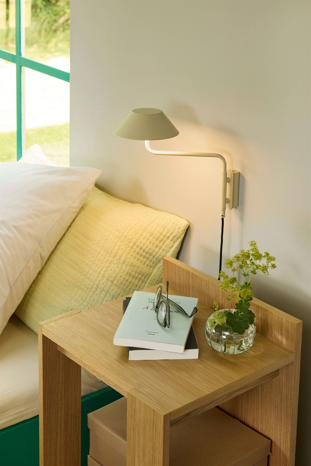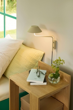 Den integrerede LED-lyskilde leverer et blændfrit og behageligt lys, der både kan bidrage til atmosfæren i rummet og fungerer som praktisk læselys. Lampearmen kan drejes, hvilket øger anvendeligheden, så lampen eksempelvis kan benyttes som læse- eller sengelampe.