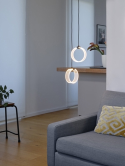 Decor Circle 2 fremstillet i holdbart akryl og metal er velegnet til opholds- eller soverum og som belysning i entré og gang eller ved en trappe. Den raffinerede pendel er nem at montere.