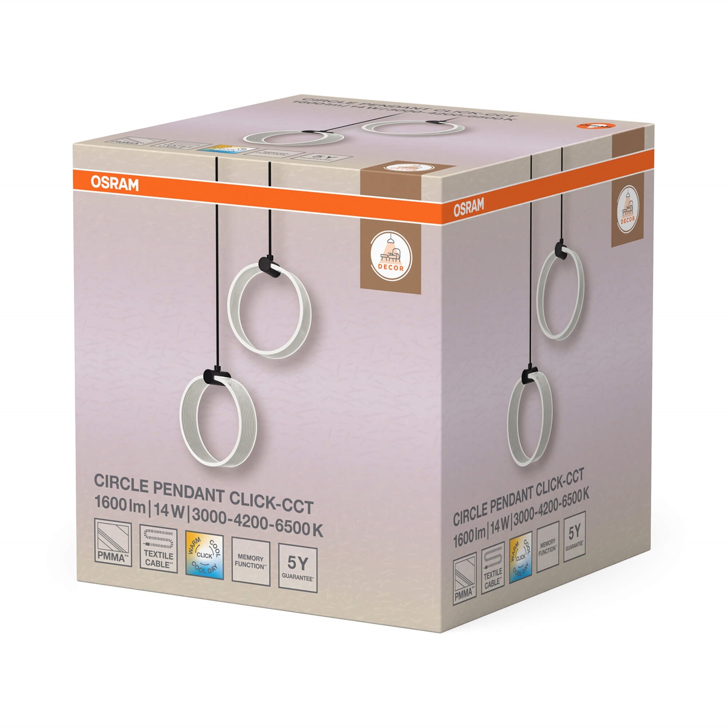 Osram Decor Circle 2 pendel med CCT og 2 lampeskærme, sort/klar