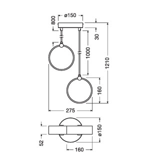 Max højde fra loftet: 121 cm