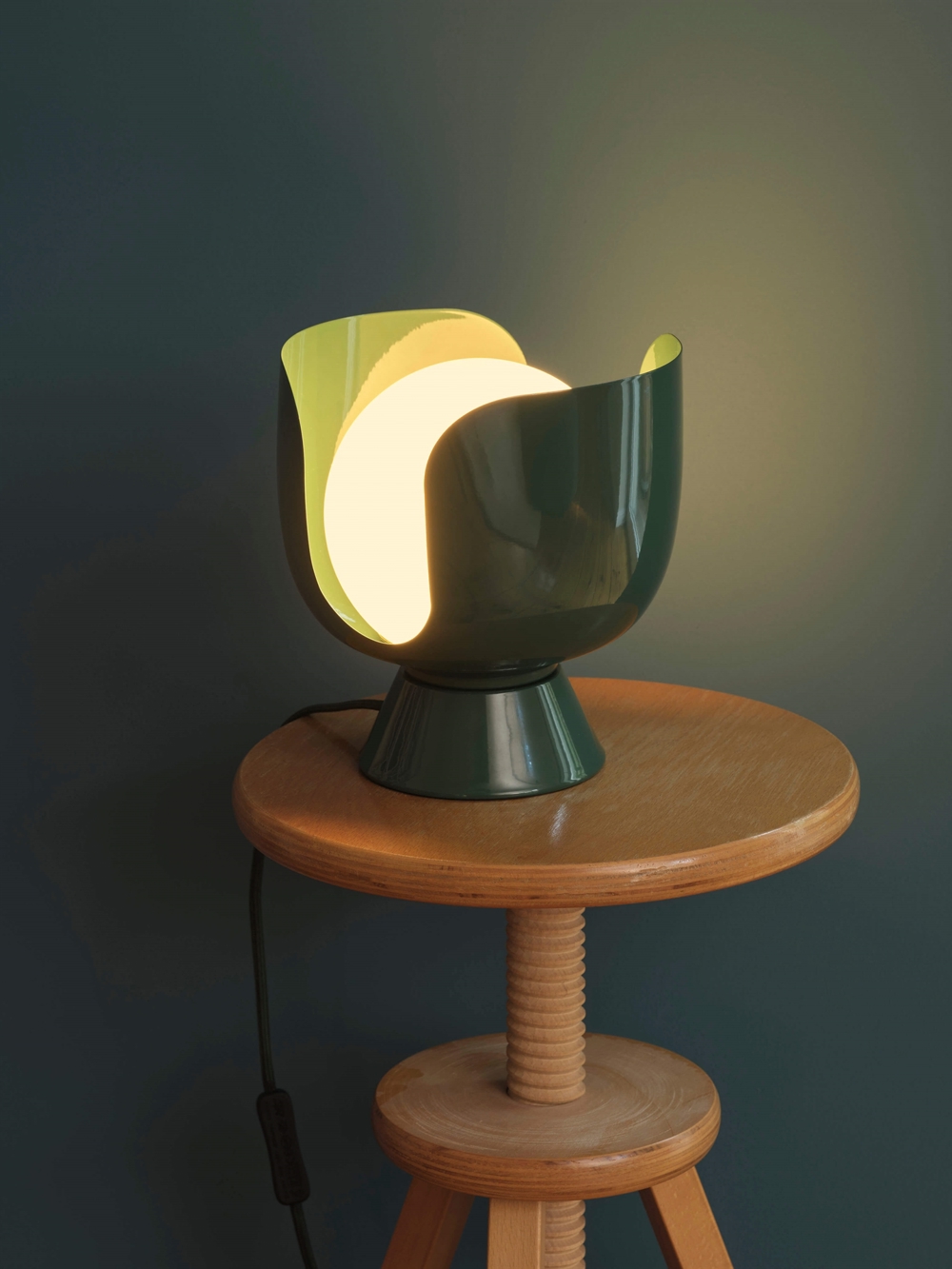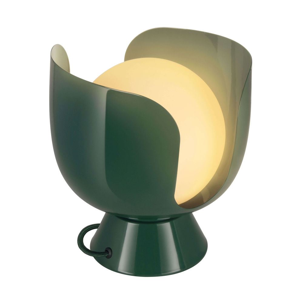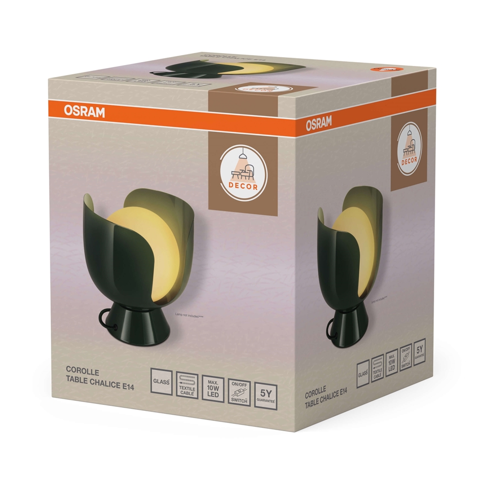Den bægerformede bordlampe Decor Corolle Chalice i stål og glas er en raffineret tilføjelse til indretningen med sin iøjnefaldende farve. Det elegante design i retrostil kan med fordel kombineres med andre lamper i Decor Corolle-serien for at skabe en helhed i indretningen. Et oplagt valg som lampe på reolen, sofabordet eller i vindueskarmen.
