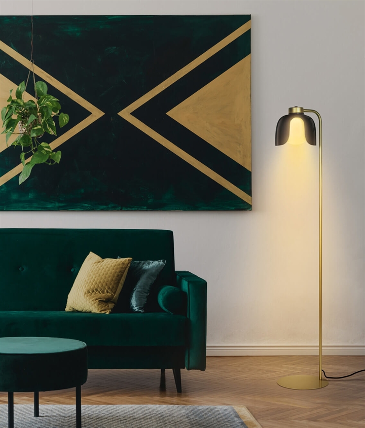 Gulvlampen Decor Corolle i stål og glas er en raffineret tilføjelse til indretningen i diskret sort. Det elegante design i retrostil kan med fordel kombineres med andre lamper i Decor Corolle-serien for at skabe en helhed i indretningen. Et oplagt valg som belysning i stuen eller soveværelset.