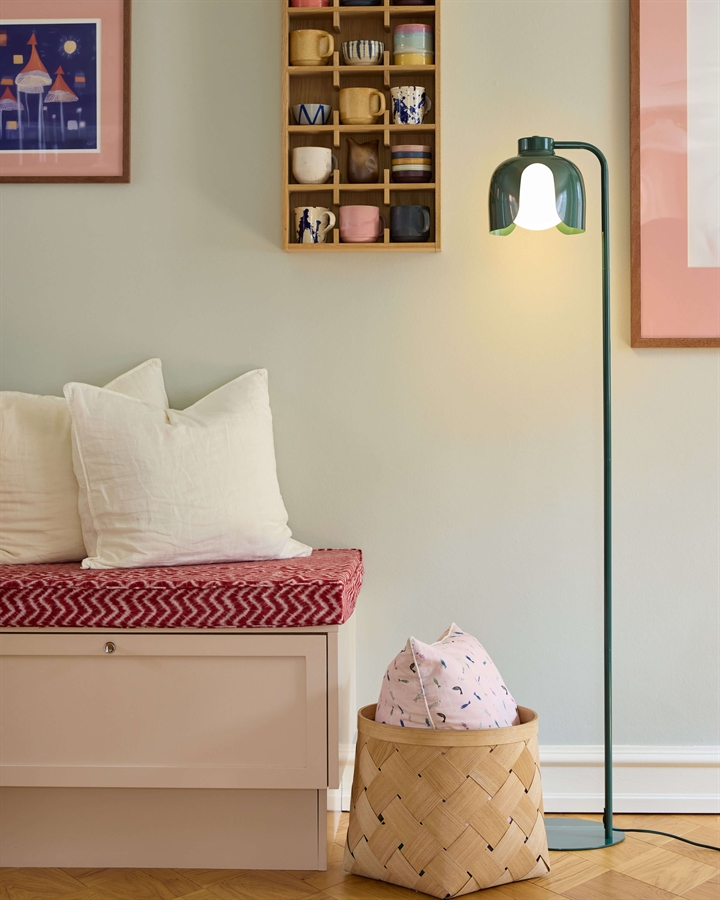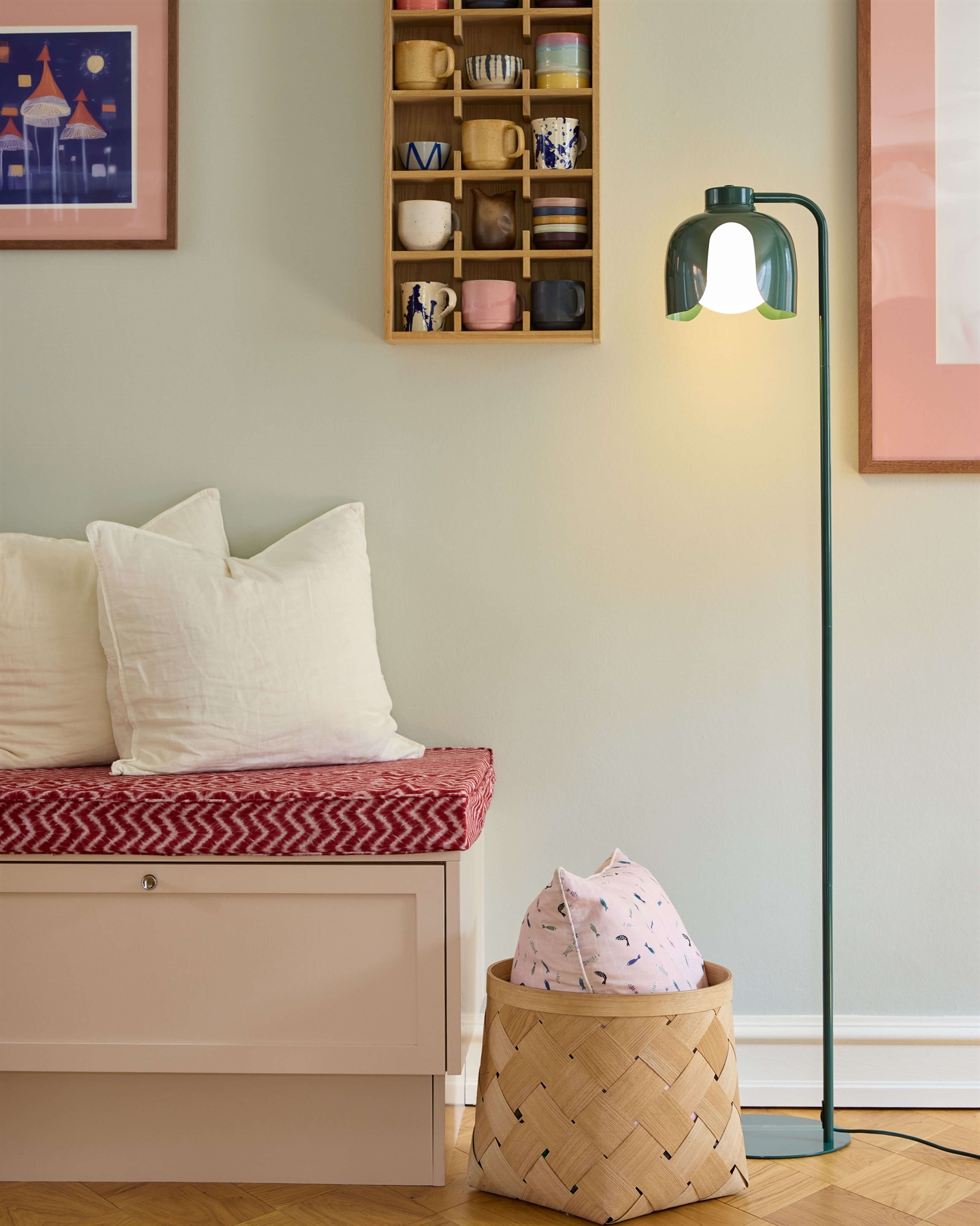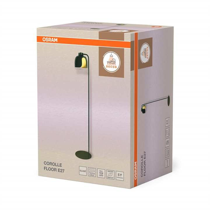 Gulvlampen Decor Corolle i stål og glas er en raffineret tilføjelse til indretningen med sin iøjnefaldende farve. Det elegante design i retrostil kan med fordel kombineres med andre lamper i Decor Corolle-serien for at skabe en helhed i indretningen. Et oplagt valg som belysning i stuen eller soveværelset.