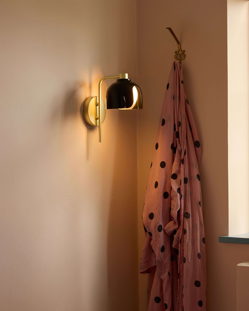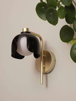 Væglampen Decor Corolle i stål og glas er en raffineret tilføjelse til indretningen i diskret sort med guldfarvet base. Det elegante design i retrostil kan med fordel kombineres med andre lamper i Decor Corolle-serien for at skabe en helhed i indretningen. Et oplagt valg som belysning til entréen, gangen og tappen eller til stuen og soveværelset.
