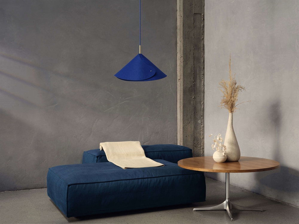 Den dekorative pendel Decor Flip i filt er med det smarte design og den blå farve en iøjnefaldende tilføjelse til indretningen. Pendlen skaber en varm atmosfære og er et godt valg som belysning over spisebordet eller lampe til stuen, soveværelset eller entréen. Kan med fordel kombineres med andre lamper i Decor Flip-serien for at skabe en helhed i indretningen.