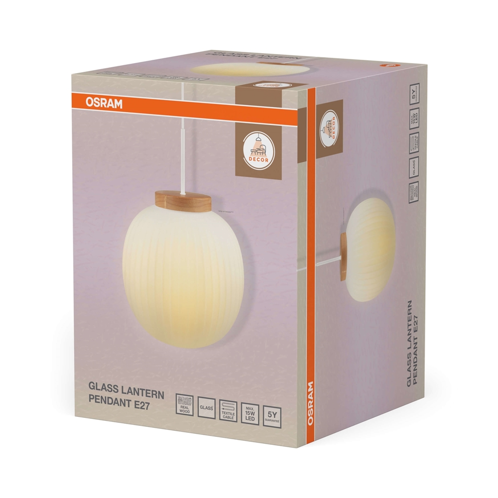 Osram Decor Glass Lantern pendel, hvid/natur
