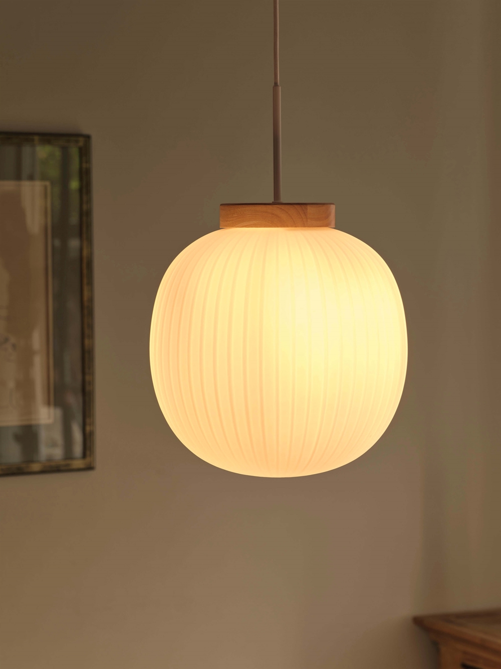 Decor Glass Lantern pendel, hvid/natur