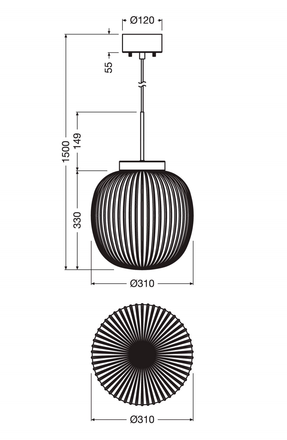 Max højde fra loft: 150 cm