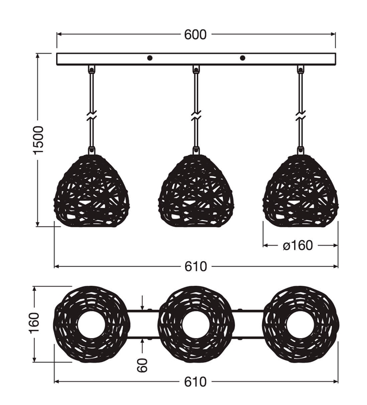 Mål: L61 cm, skærme: Ø16 cm