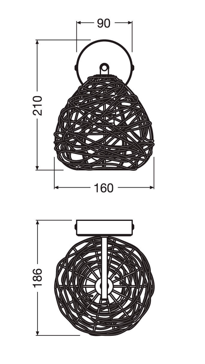Mål: H21 x D18,6 cm, skærm: Ø16 cm, base: Ø9 cm