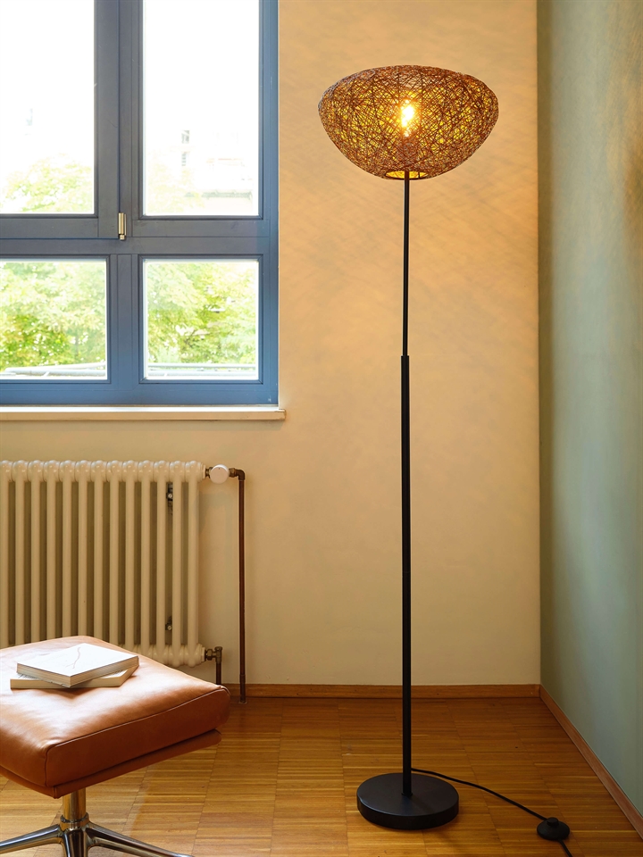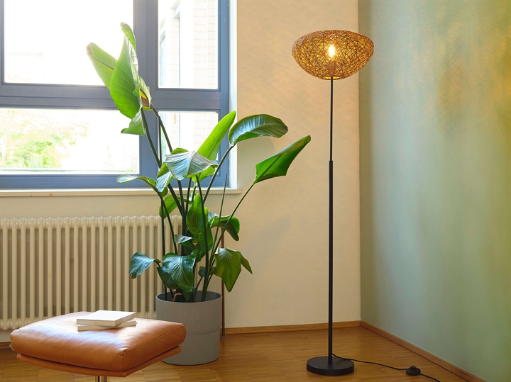 En dekorativ gulvlampe, der forener æstetik, funktionalitet og ansvarlig materialebrug - perfekt til dig, der ønsker et varmt og personligt lys i hjemmet.
