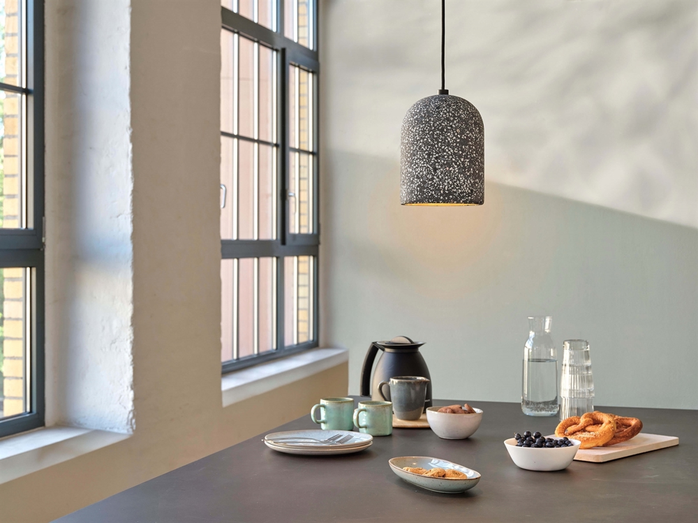 Pendlen Decor Pill i metal og terrazzo er et oplagt valg som køkkenpendel eller belysning over spisebordet og hænger flot alene eller flere sammen på række eller i en gruppe. Den stilfulde lampe er også et godt valg til en entré eller trappeopgang og er udstyret med en E27-fatning, der gør det muligt at vælge energieffektiv LED-lyskilde i mange forskellige lysstyrker.