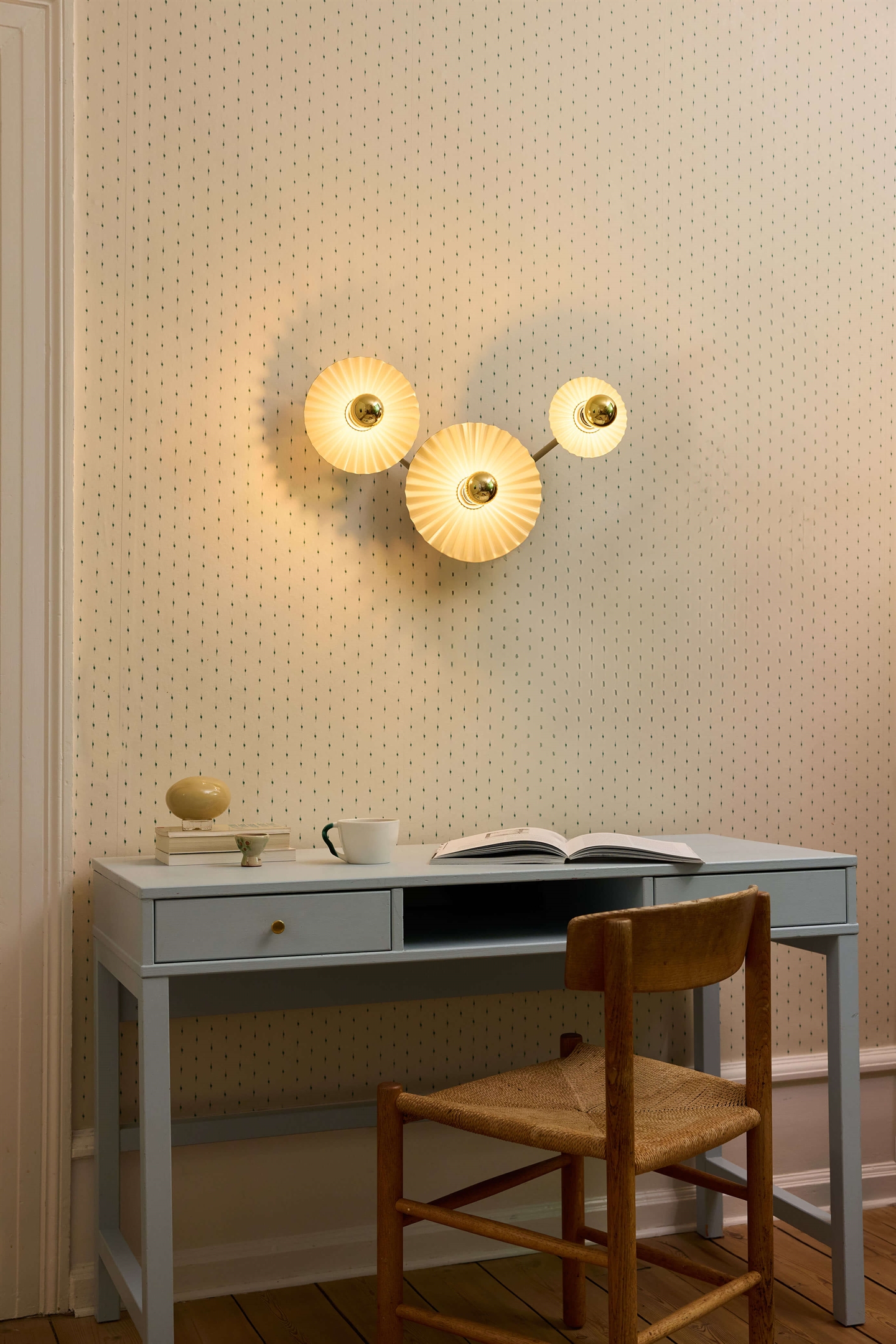 Udover væg- og loftlamper med én, tre eller fem skærme findes Decor Plisse som pendel. Lamperne i serien kan med fordel kombineres, så der skabes en helhed i indretningen.