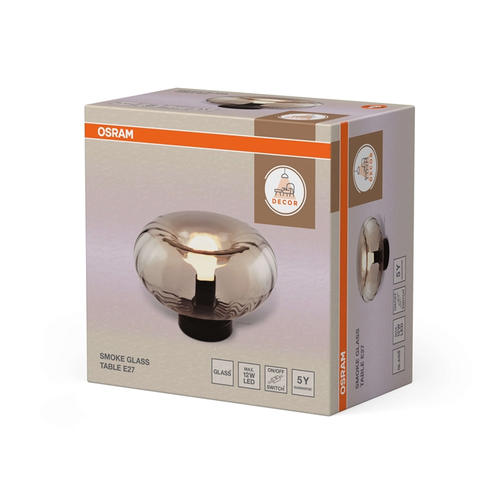 Osram Decor Smoke Glass bordlampe med røgfarvet glasskærm og sort base