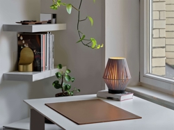 Bordlampen kan med fordel kombineres med andre lamper i Decor Stripes-serien for at skabe en helhed i indretningen. Lampeserien fås i beige eller mørkegrå.