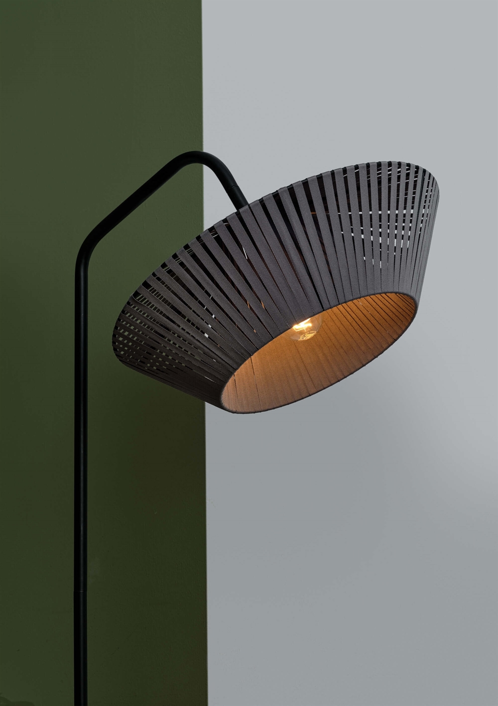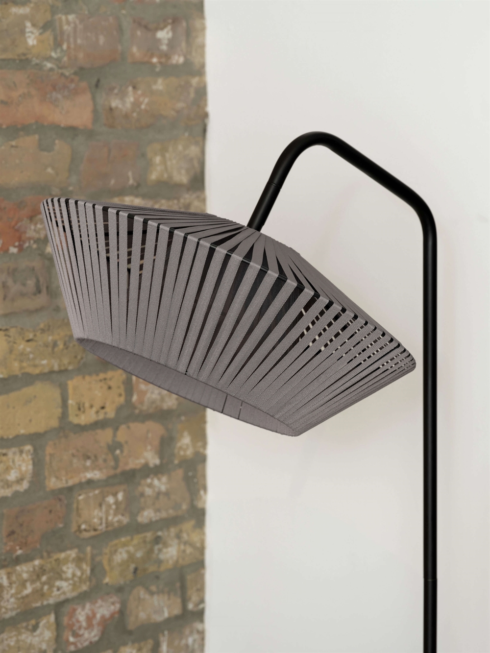 Gulvlampen kan med fordel kombineres med andre lamper i Decor Stripes-serien for at skabe en helhed i indretningen. Lampeserien fås i beige eller mørkegrå.