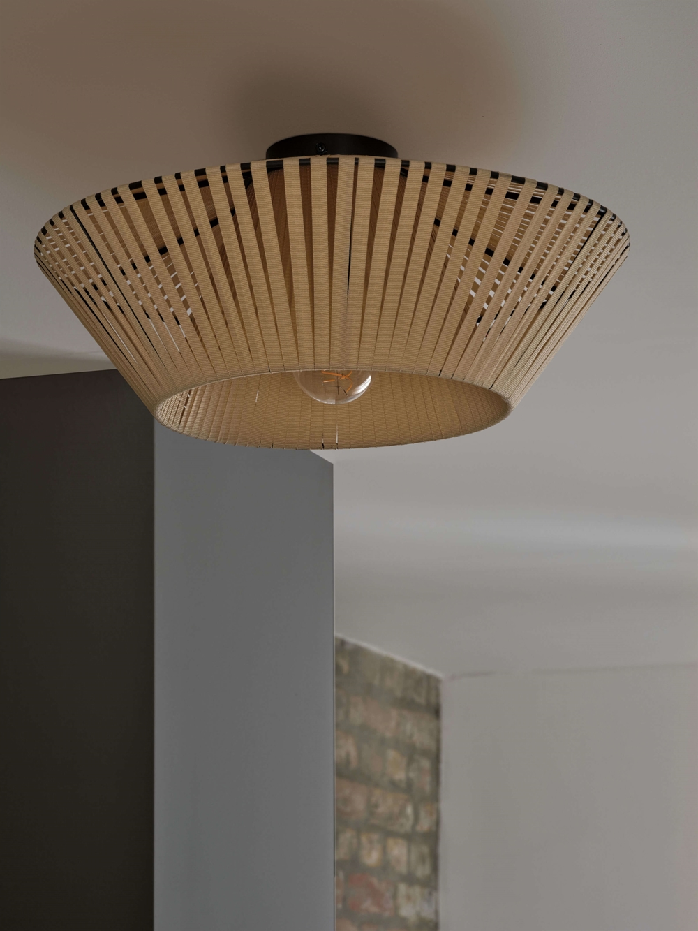 Loftlampen Decor Stripes med stofskærm i polyester har et smukt udtryk, der vil passe godt til mange indretninger. Med sit karakteristiske design bidrager loftlampen til en varm atmosfære med et behagelige lys. Et oplagt valg som belysning til entréen og gangarealet eller til stuen og soveværelset.