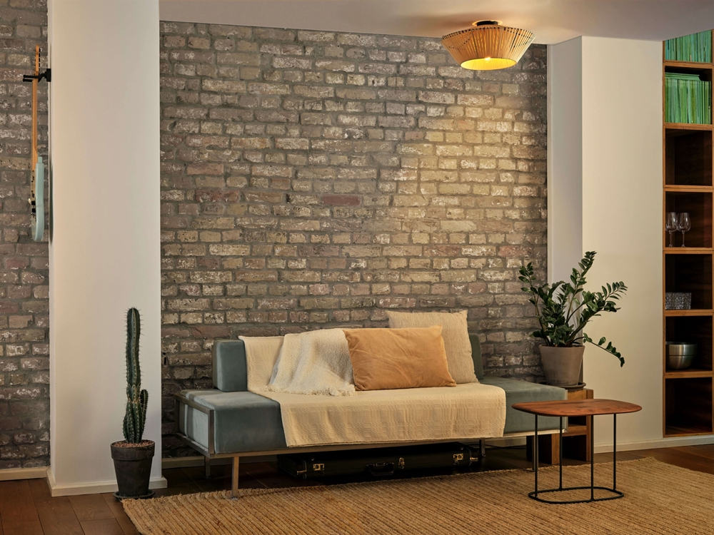 Loftlampen kan med fordel kombineres med andre lamper i Decor Stripes-serien for at skabe en helhed i indretningen. Lampeserien fås i beige eller mørkegrå.