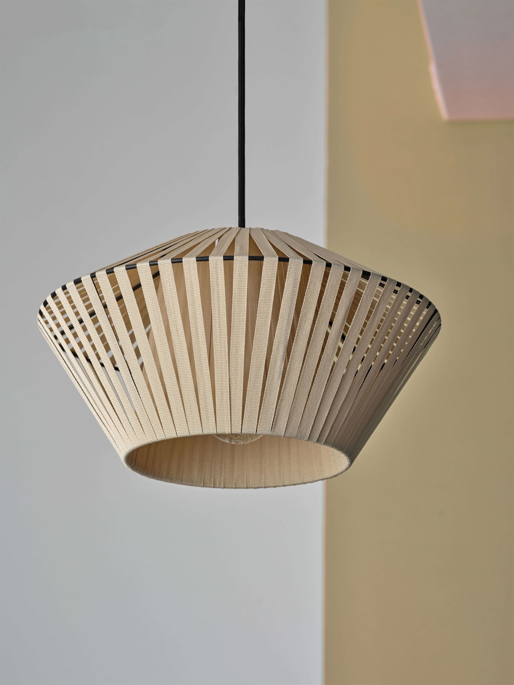 Pendlen findes i to størrelser, som med fordel kan kombineres med andre lamper i Decor Stripes-serien for at skabe en helhed i indretningen. Lampeserien fås i beige eller mørkegrå.
