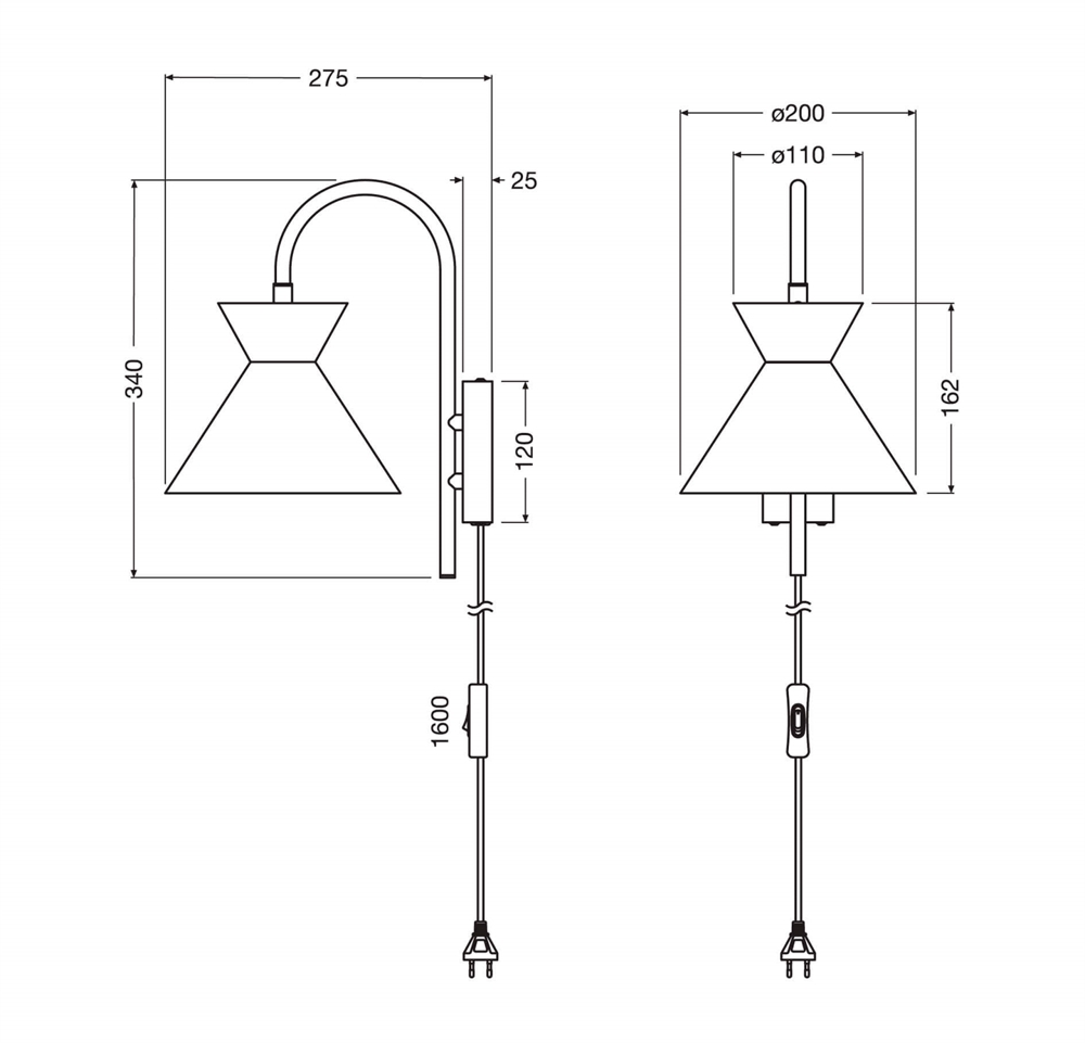 Væglampen kan med fordel kombineres med andre lamper i Decor Waist-serien for at skabe en helhed i indretningen. Den kommer med 1,5 meter stofledning med afbryder og stik til tilslutning til stikkontakt og kan også monteres hardwired direkte på lampeudtag.