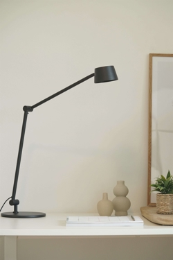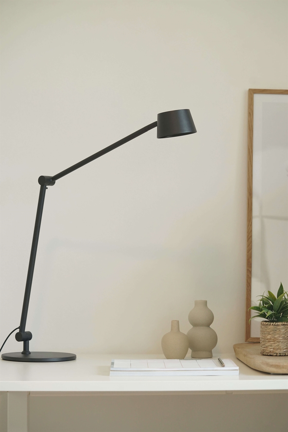 Fleksible led og et vipbar lampehoved giver fuld kontrol over lysets retning. Lysstyrken på den integrerede LED-lyskilde justeres nemt via touchdæmperen, som er placeret øverst på lampehovedet. Et oplagt valg som skrivebordslampe eller funktionelt arbejdslys.