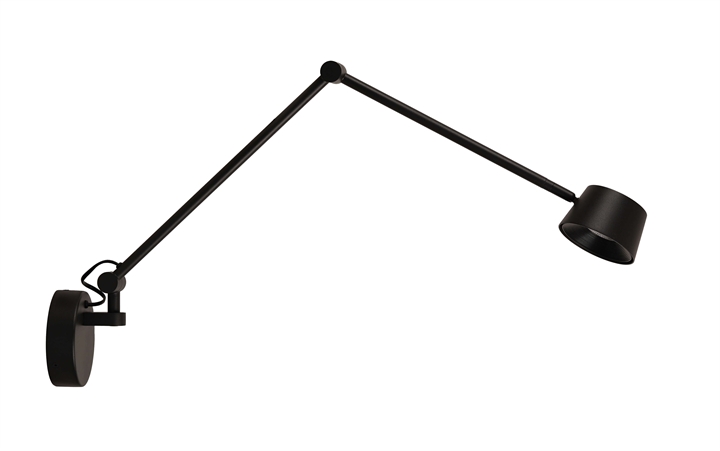 Det stramme formsprog med diskrete og gennemtænkte detaljer har et industrielt udtryk, der understreges af de synlige led og det slanke lampehoved.