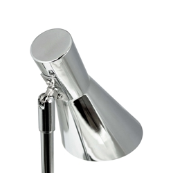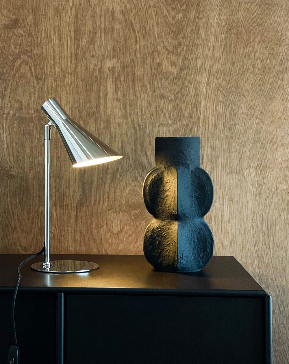 DL12 mini bordlampen har et minimalistisk design og vil med det stilrene og funktionelle design i krom være en raffineret og eksklusiv tilføjelse til ethvert rum. Skærmen kan vippes og drejes i den ønskede retning og afbryderen er praktisk placeret på ledningen. Ligesom resten af DL-lamperne passer mini bordlampen ind i mange stilarter. Med sin lille størrelse er den perfekt til reolen, vindueskarmen eller natbordet.