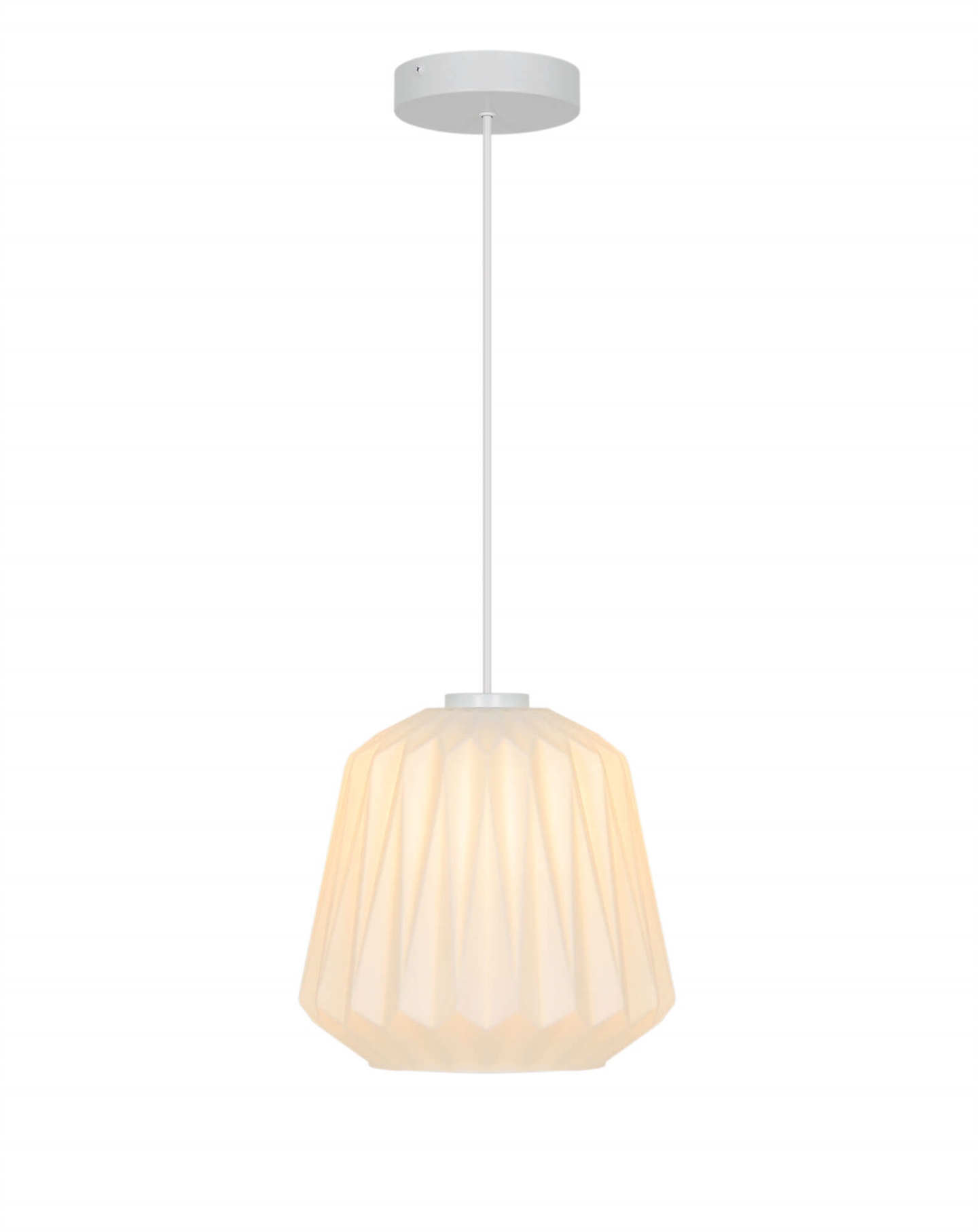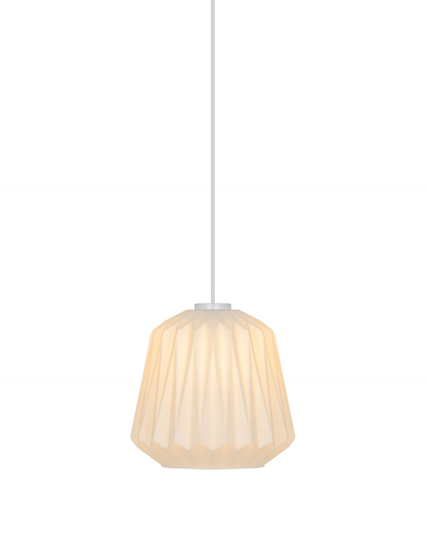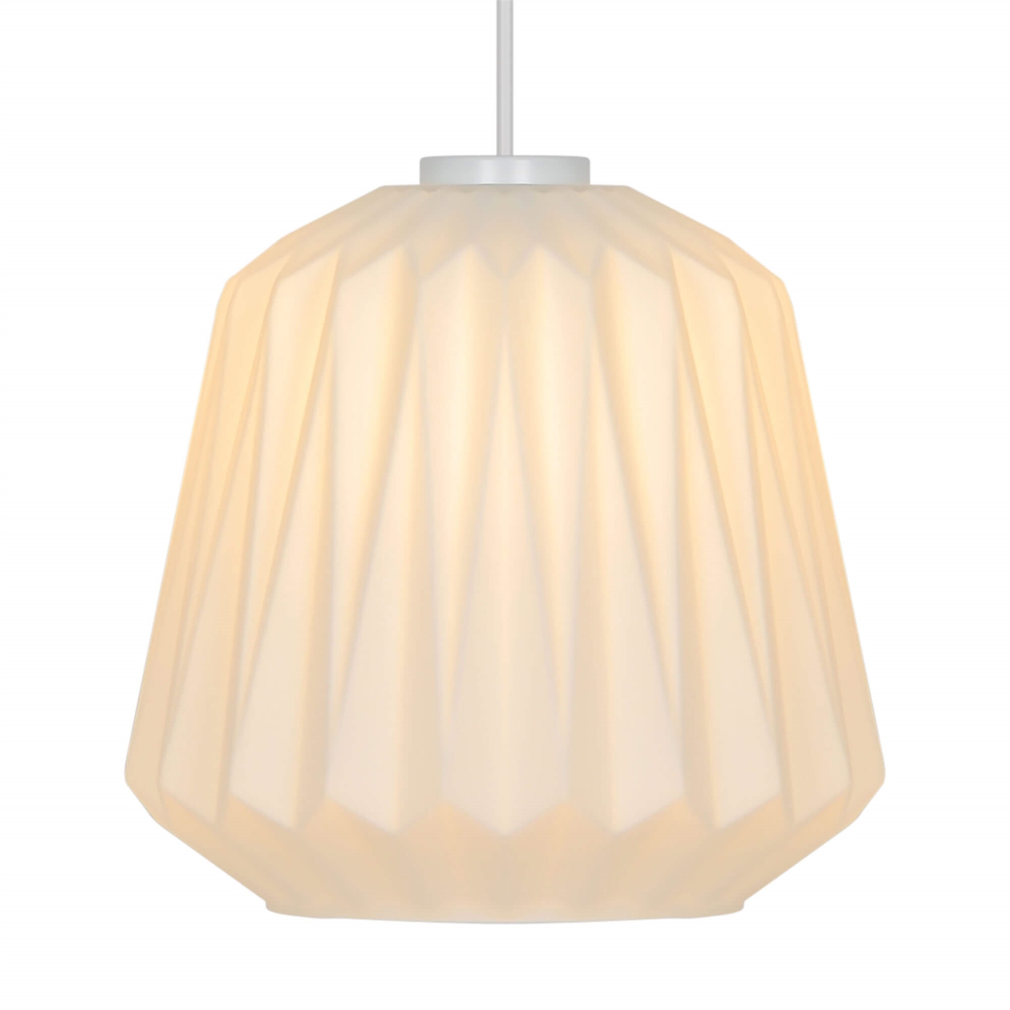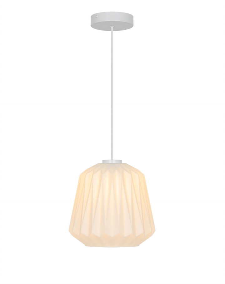 Elbies stilfulde udtryk trækker på klassisk lampedesign med plisserede skærme og er fremstillet i mat hvidt opalglas.