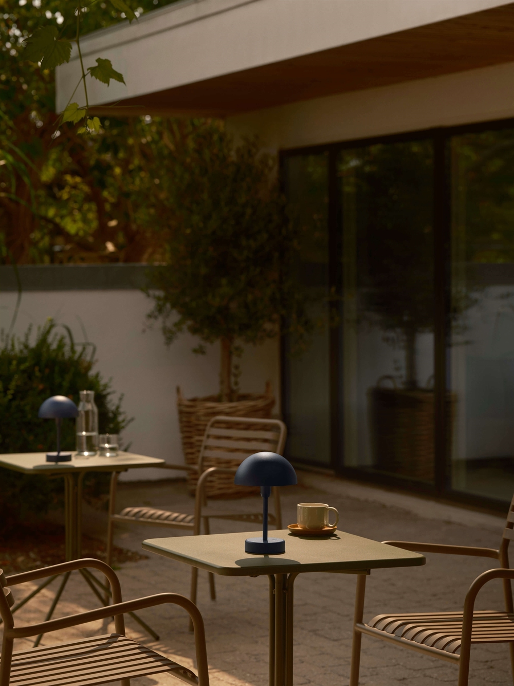 Ellen To-Go er nem at tage med sig og kan benyttes både indendørs og udendørs. Den søde batterilampe har enkle og bløde former, som skaber et minimalistisk skandinavisk udtryk. Lampen findes i flere forskellige farver og kan dæmpes i tre trin med Moodmaker™, så lysstyrken kan tilpasses den ønskede stemning. På fuld styrke kan batterilampen lyse 4 timer, på mellemste styrke i seks timer og ved laveste styrke i op til 12 timer. En fuld opladning tager 3 timer med den medfølgende ladebase.