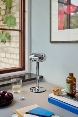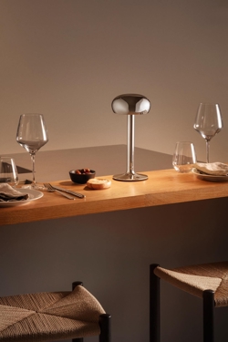 Please wait to be seated Emendo LED batterilampe / bordlampe, krom - designet af Hans Thyge & Co ApS