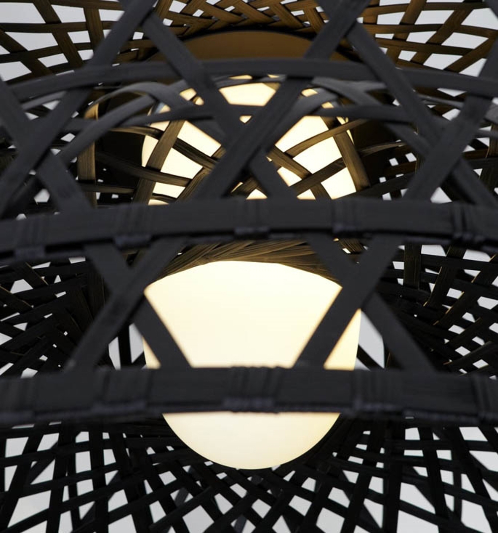 Derfor har Emperor pendlen et design i særklasse med sin bambusflettede skærm, som findes i sort eller rød.