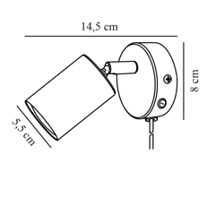 Mål: L14,5 cm, base: Ø8 cm, skærm: Ø5,5 cm