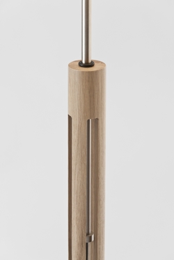Fad gulvlampen har en solid egetræs struktur, cylinderformet, et tværsnit og en hvid pergament skærm. Meget praktisk lampe med justerbar højde og lysintensitet.