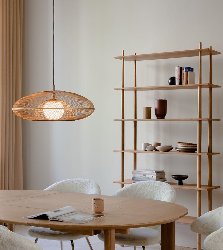 Faraday findes i to størrelser. Lampeskærmen skal kombineres med et ophæng, som købes særskilt. Vælg eksempelvis E27-ophængene Cannonball, Cannonball Cluster 2 og 3, Cord Set, Cord Set Pro eller Rosette fra Umage.