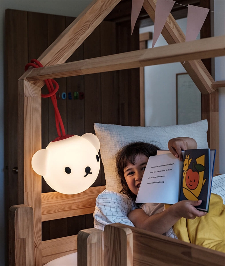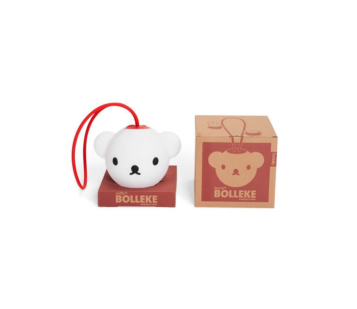 Den transportable Boris-lampe vil være et hit for både små og store fans af det verdensberømte univers med den lille hvide kanin Miffy og bjørnevennen Boris. Lampen tilføjer et legende præg til børneværelset eller ethvert andet rum og